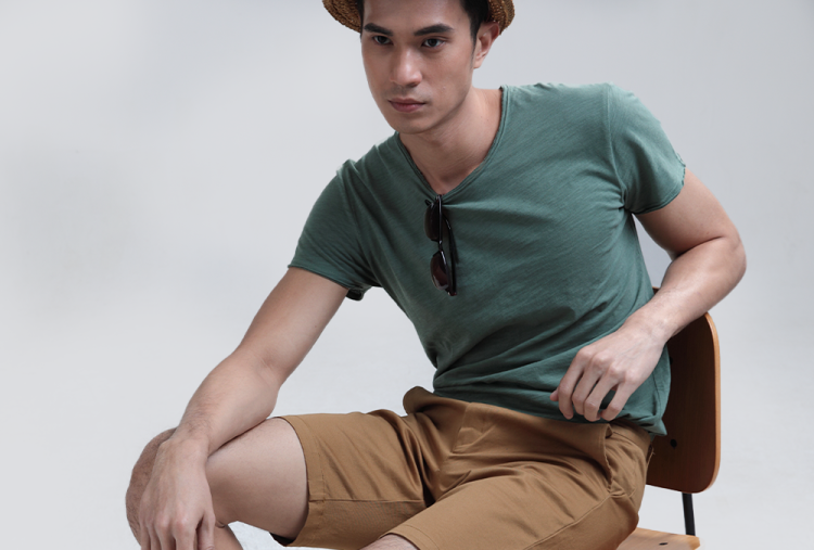 เสื้อยืดแขนสั้นผู้ชาย คอวี เข้ารูป สีขาว สีเทา สีดำ Cotton 100% แบรนด์ Tepp