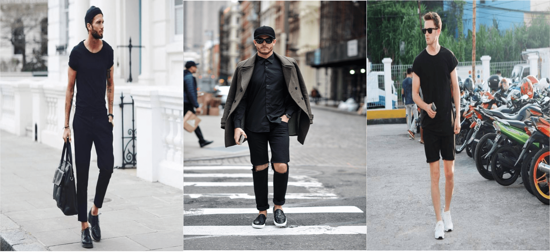 2.เสื้อผ้าสีดำ เป็นสีที่เบสิคอีกสีหนึ่งแต่เชื่อได้ว่าเป็นสีที่หนุ่มๆ ทุกคนจะต้องมีอยู่ติดบ้านอยู่แล้ว เพราะสามารถมิกแอนด์แมทช์ได้ง่าย ใส่แล้วดูดีมีสไตล์ และเท่ได้แบบไม่เหมือนใคร ทำให้ดูลึกลับน่าค้นหา เป็นสีที่ผู้ชายใส่แล้วดูมีเสน่ห์กันกับทุกคน แต่ถ้าจะให้ใส่เสื้อผ้าสีดำแบบธรรมดาๆ ก็อาจจะทำให้ดูน่าเบื่อเกินไป ไอเดียการแมทช์เสื้อผ้าสีดำให้หล่อเท่ได้ง่ายๆ คือ การใส่เสื้อและกางเกงสีดำทั้งตัว ก็ทำให้คุณผู้ชายหลายๆ คนดูน่าค้นหามากขึ้น