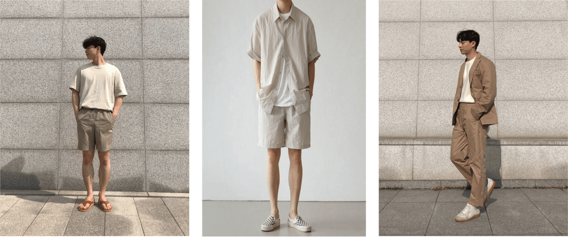 3.สีเอิร์ธโทน เสื้อผ้าสีเอิร์ธโทนมีอีกสีที่หนุ่มๆ หลายคนที่ชื่นชอบและอยู่ในกระแสตลอด แต่งแล้วไม่ตกเทรนอย่างแน่นอน โดยกลุ่มสีเอร์ธโทน คือสีที่ยึดกับความเป็นธรรมชาติ หรือสีที่พบได้ในธรรมชาติไม่ว่าจะเป็นโทนสีเบจ หรือสีเขียวโทนต่างๆ แต่งออกมาแล้วดูสบายตา ดูเป็นผู้ชายที่มินิมอล ไอเดียการแมทช์เสื้อผ้าสีเอิร์ธโทนเสื้อยืดสีน้ำตาล มาแมทช์กับกางเกงขาสั้น ในวันสบายๆ หรือจะเป็นเสื้อสูท สีเบจเข้มกับรองเท้าผ้าใบสีขาว ให้ลุคดูมีมิติน่าสนใจยิ่งขึ้น