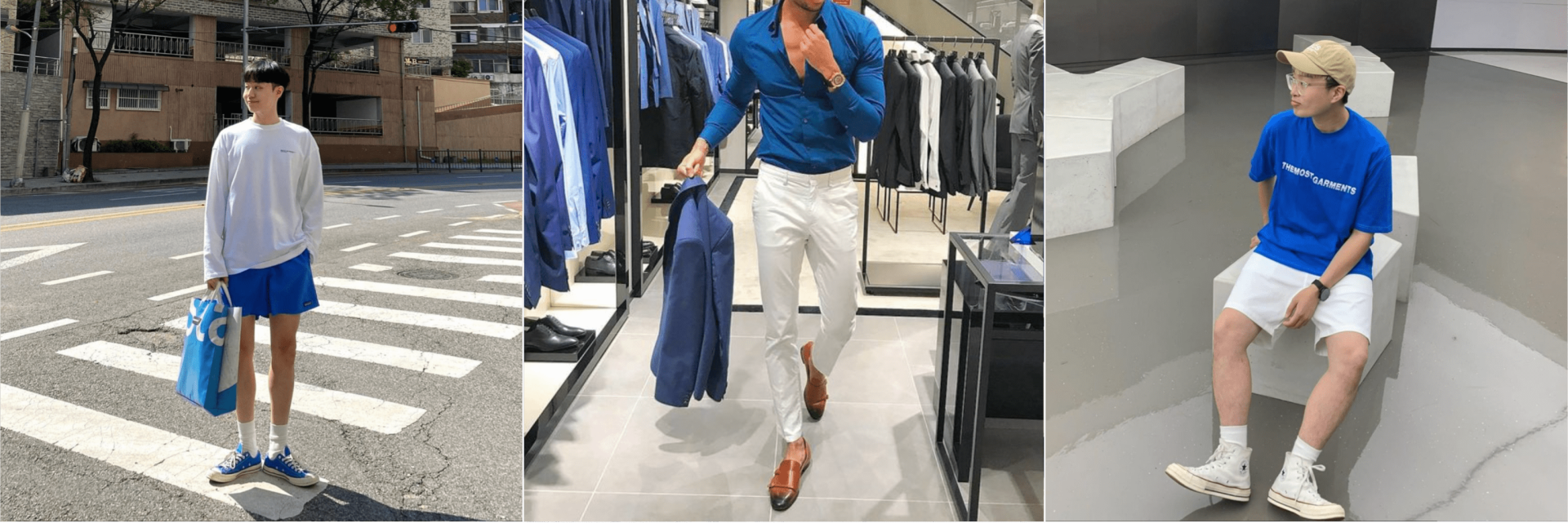4.เสื้อผ้าสีฟ้า-น้ำเงิน เสื้อผ้าโทนสีฟ้าและน้ำเงิน เป็นโทนสีที่หนุ่มๆ ควรมีติดตู้ไว้สักตัว เพราะจะทำให้การแต่งตัวดูสนุกมากขึ้น แถมยังสามารถใส่ได้ทุกสถาการณ์ เป็นโทนสีที่ให้ความรู้สึกแบบเรียบเท่ โดยไอเดียในการแต่งตัวโทนสีฟ้า-น้ำเงิน ก็สามารถแต่งได้ง่ายๆ ได้เลยเพียงแค่ใส่เสื้อเชิ้ตสีน้ำเงิน กับกางเกงขายาวสีขาวก็ทำให้ลุคของหนุ่มๆ ดูเท่สมาร์ตมากขึ้น หรือจะเป็นการจับคู่สีของเสื้อโอเวอร์ไซส์สีน้ำเงินกับกางเกงสีขาวก็ทำให้เป็นลุคสตรีท