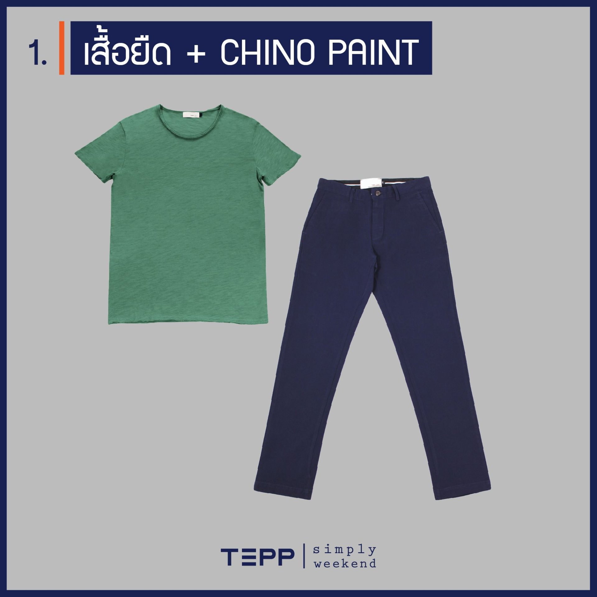 1.แต่งตัวผู้ชายด้วยเสื้อยืด Artist Tee กับกางเกงชิโน เป็นกางเกงที่สวมใส่ง่าย ใส่เข้าได้กับทุกลุค ทุกแบบ และกางเกงชิโนมีสีอีกมากมาย ที่เหมือนกับเสื้อยืด Artist Tee แค่เปลี่ยนสีเสื้อยืดArtist Tee และสีของกางเกงชิโน ก็จะทำให้ลุคเปลี่ยนได้ง่ายๆ อย่างเช่น เสื้อยืด Artist Tee สีเขียว สวมใส่คู่กับกางเกงสีกรม จะทำให้ลุคออกมาที่เรียบง่าย ใส่ไปทำงานหรือ ใส่ไปเดินเล่นก็สามารถทำได้ค่ะ แต่ข้อควรระวังในการใส่เลย ต้องดูเรื่องของการจับคู่สีให้ดีๆ ด้วยนะคะ