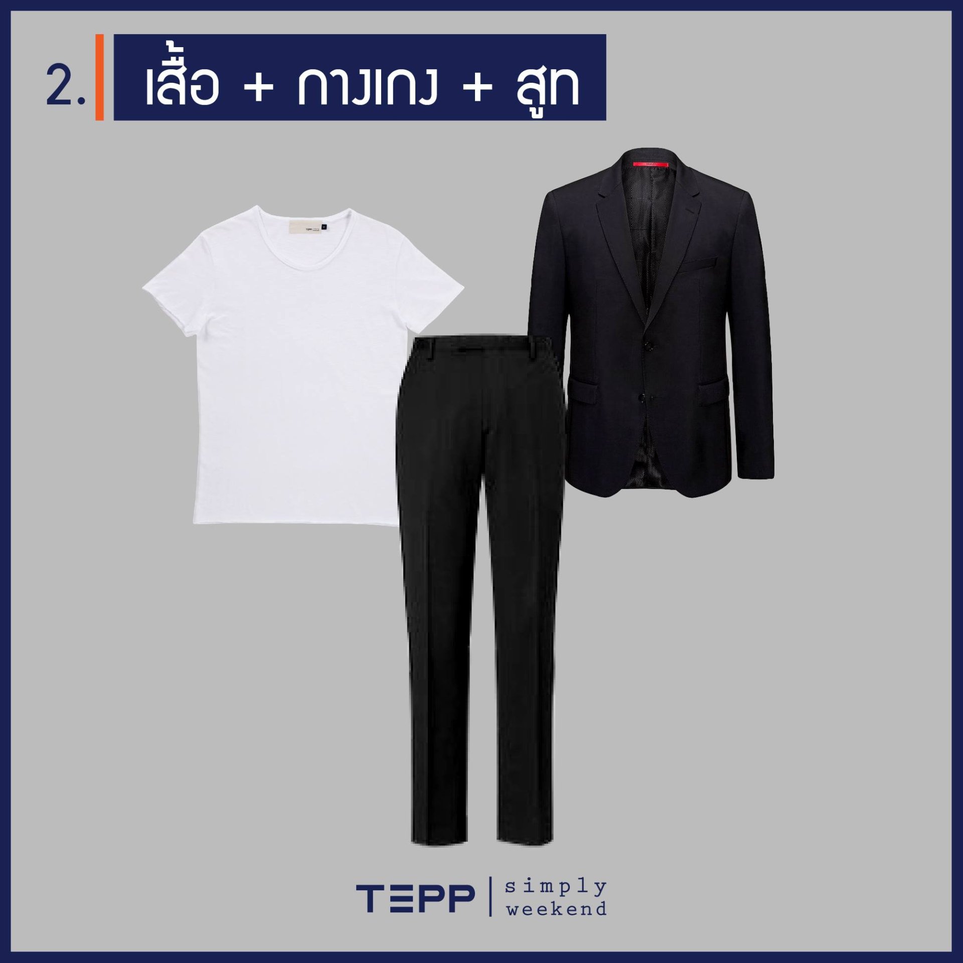 2.แต่งตัวผู้ชายด้วยเสื้อยืด Artist Tee สีขาว กับกางเกงสแลคสีดำสวมและคลุมด้วยเสื้อสูทสีดำ เหมาะสำหรับผู้ชายที่ต้องการแต่งตัวแบบทางการ ไม่ว่าจะไปสมัครงาน หรือไปงานแต่งของเพื่อนหรือ ที่ไหนที่ต้องแต่งตัวสุภาพ แต่ก็ยังมีความสบายอยู่ด้วยเสื้อยืด Artist Tee แต่ถ้าสำหรับคุณผู้ชายที่ต้องการความสดใสมากขึ้น อาจเปลี่ยนจากเสื้อยืด Artist Tee สีขาวเป็นสีแดง ก็จะเพิ่มลุคให้คุณผู้ชายดูหล่อเท่มากกว่าเก่า