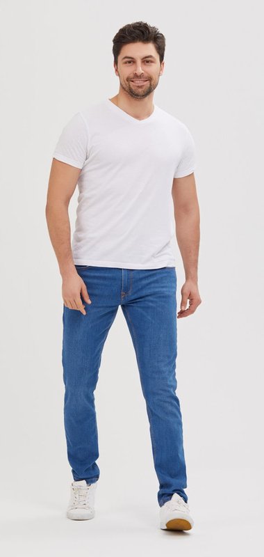 เสื้อใส่ง่ายที่แมทช์ง่ายที่สุด ใส่กับกางเกงยีนส์ง่าย ๆ เลือกที่มีสีเข้มหน่อยหรือมีการฟอกสี เพิ่มลูกเล่นในการใส่ ส่วนเสื้อก็เลือกสลับสีตามชอบได้เลยครับ สีขาว เทา ดำ ไม่ว่าจะเป็นคอกลม คอวี ก็เลือกได้ตามที่สะดวกเลย รองเท้าเลือกเป็นผ้าใบได้ทั้งสีขาว สีเทาอ่อน ๆ และสีดำ ออกมาดูเท่ ทะมัดทะแมง และสมาร์ทสุด ๆ