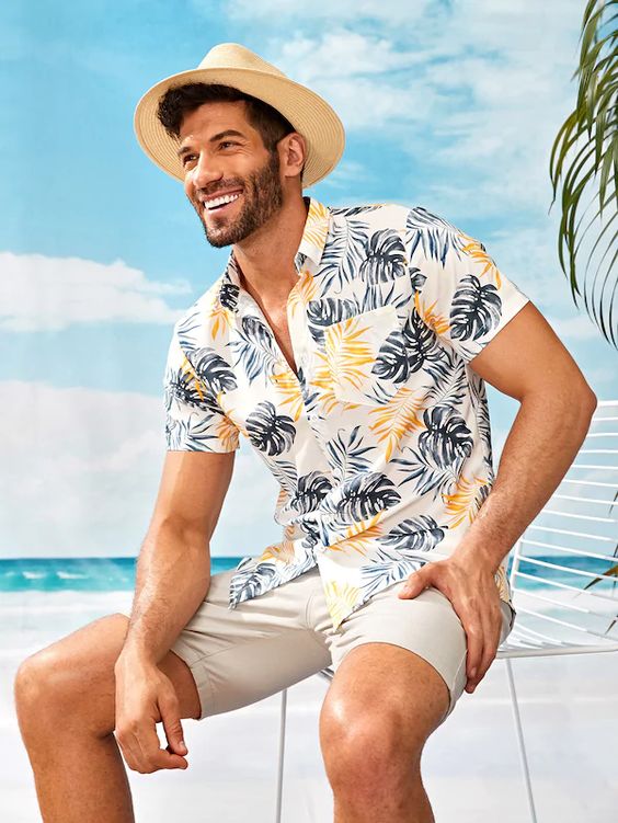 แต่งตัวผู้ชายไปเที่ยวทะเล อยากได้ลุคบีชหล่อ เท่ แต่งง่าย ๆ ชิล ๆ หยิบเสื้อเชิ้ตฮาวายหรือเสื้อพิมพ์ลายทรอปิคอล + กางเกงสีครีม เบจ น้ำตาล หรือสีกรม โดยเน้นคู่สีที่เข้ากัน ถือเป็นลุคสบาย ๆ ดูมีความสมาทมากขึ้น สามารถใส่เดินเล่นได้ทั้งในเมืองและริมชายหาดในวันหยุดเลย