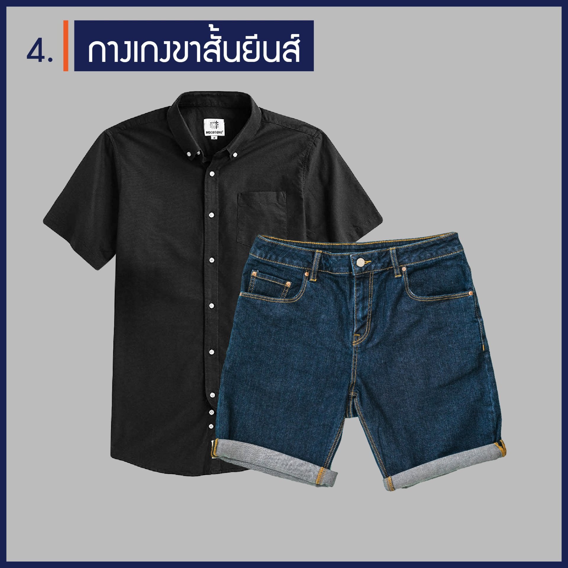 4. แต่งตัวผู้ชายกับกางเกงขาสั้นยีนส์